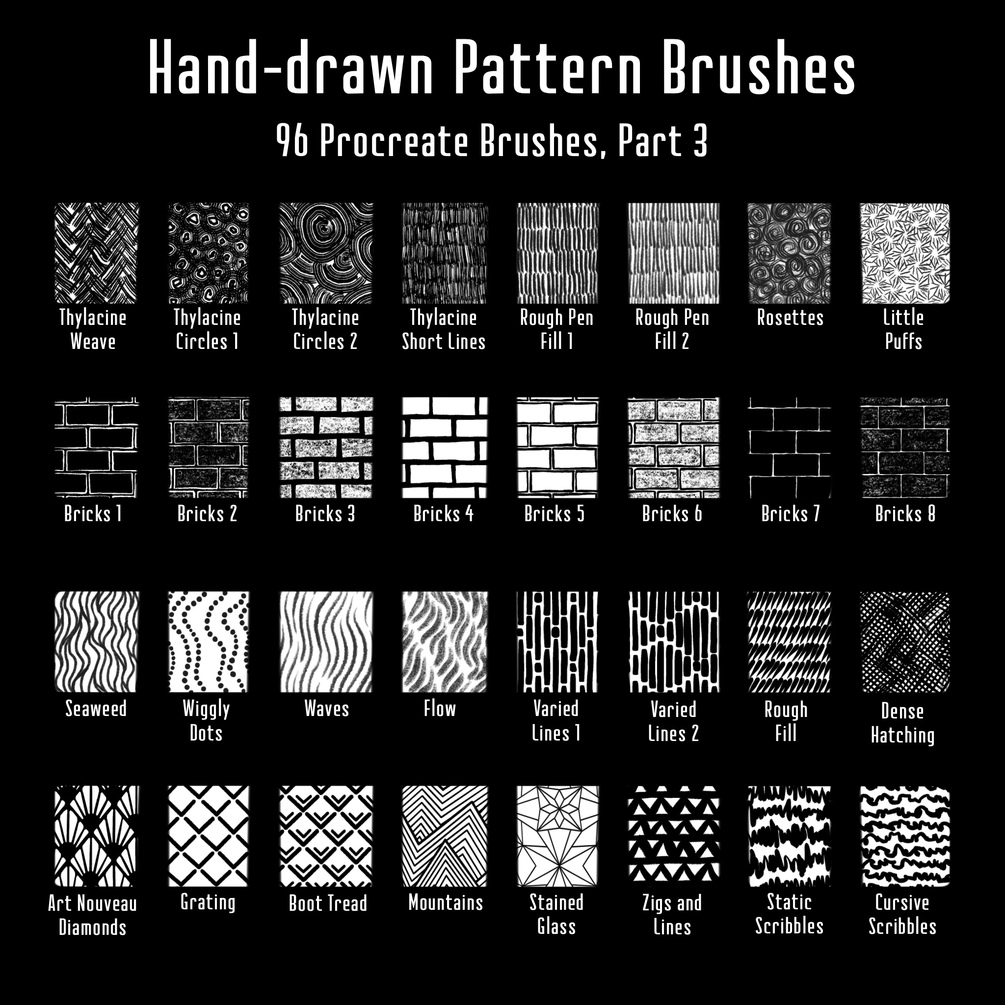 Want that hand-inked look for filler patterns, but don't want to draw them in every time? Perhaps some of these brushes might come in handy!