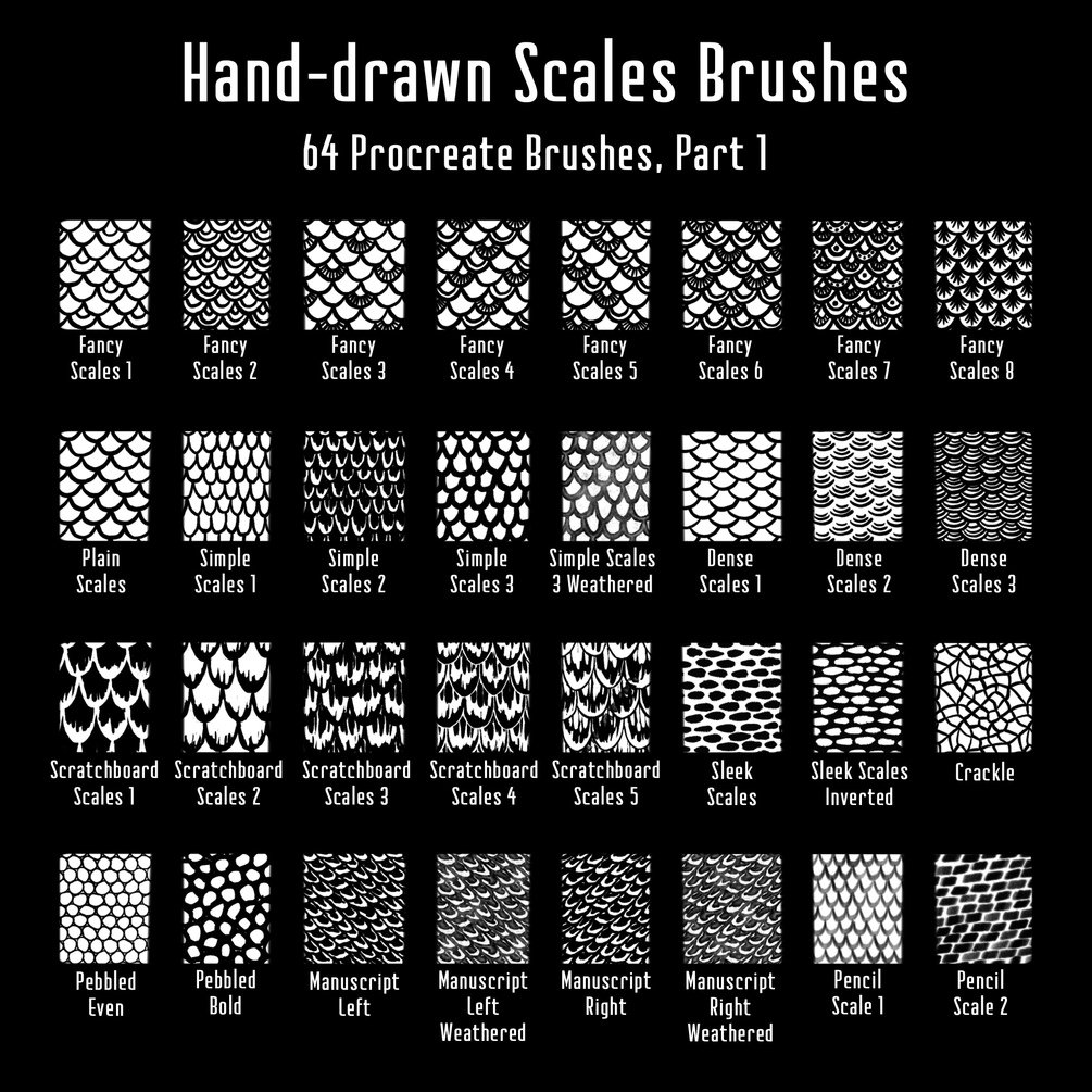 Drawing serpents, mermaids, or dragons? Want that hand-drawn quality on your digital scales, but too lazy to draw them all in by hand? Boy do I have the brush set for you!