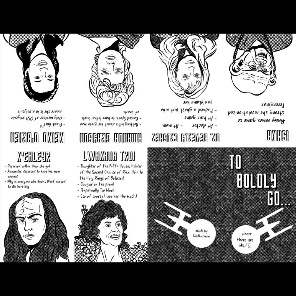 A digital version of a one-page mini-zine I made about my favorite Star Trek moms. Comes as a PDF of individual pages and a full-page PDF that can be printed and folded into a one-page zine.